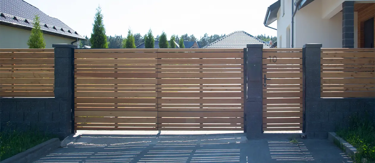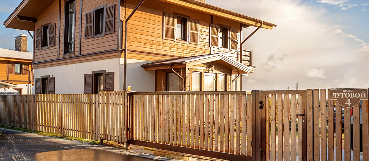 Выберите единый стиль оформления для будущих въездных ворот, забора и калитки. Закажите рамы и используйте желаемые материалы для их заполнения.